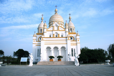 巴黎圣心教堂是典型的折衷主義風(fēng)格的建筑,建于1875年,1877年竣工。在19世紀(jì)中葉至20世紀(jì)初,折衷主義建筑是歐美一些國家流行的一種建筑風(fēng)格,19世紀(jì)中期以法國最為典型。這座建筑的穹頂和厚實(shí)的墻身呈現(xiàn)了拜占庭建筑的風(fēng)格,又兼取了羅曼建筑的表現(xiàn)手法。八里河的這座圣心教堂是由阜陽建筑設(shè)計(jì)院依據(jù)圖片,按比例建造的。