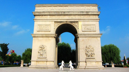 凱旋門是為了紀(jì)念拿破侖一世在1805年12月2日的一次戰(zhàn)役中大敗奧俄聯(lián)軍的勝利而建的。在1806年2月12日,根據(jù)拿破侖一世親自批準(zhǔn)的計(jì)劃,按照著名設(shè)計(jì)師戛爾格蘭的設(shè)計(jì)圖紙施工,歷時30年,于1836年7月29日竣工。八里河風(fēng)景區(qū)的雄獅凱旋門是按原建筑的1/3縮小。