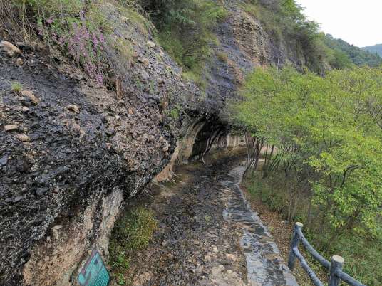 皖西大裂谷集峽谷地貌和洞穴景觀于一體,裂谷長約1500米,寬數(shù)十米、高十余米,谷坡陡峭,多在80度左右,最陡處四座直立,谷深數(shù)十米、高百余米,為一陡立的“V”字形谷,大別山區(qū)所罕見。裂谷是由流水沿斷裂構(gòu)造長期侵蝕下切所形成的,其西側(cè)洞穴也是因流水沿巖石構(gòu)造軟弱部位選擇性溶蝕所致。