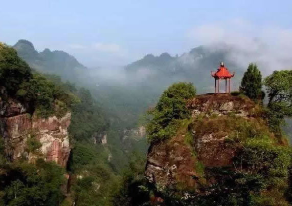 群仙樓:由彌陀佛峰西行,越重嶺狹背即達(dá),巨崖危立如樓閣。沿途有小天橋、九龍泉、通天洞、八戒洞、迷宮洞、五雷峰、觀音石、船艙巖、獨(dú)秀峰、三教峰、童子拜觀音、龜蛙跳澗,洪坑竹海等。
