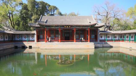 畫舫齋位于北海東岸,建于清乾隆二十二年(1757年),是掩映在山林中的一處獨(dú)立院落。前殿為“春雨淋塘”,中有水池,北為正殿“畫舫齋”。東西各有一處院落,東為“古柯庭”,西為“小玲瓏”。整個(gè)畫舫齋朱廊環(huán)繞,結(jié)構(gòu)精巧,環(huán)境別致,形似停泊在北海湖邊的一條大船,原引用歐陽修的《畫舫齋記》而造其形,得其名。乾隆皇帝經(jīng)常到此游玩,光緒皇帝曾在此居住,慈禧太后也常來這里游宴、聽評(píng)書。