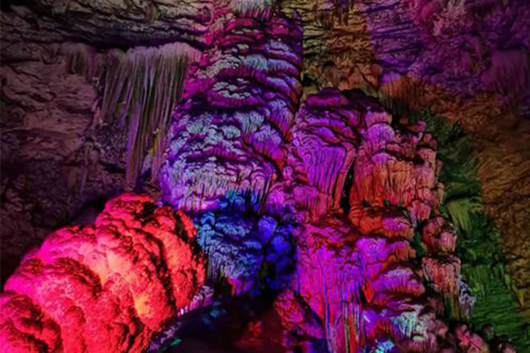 云水洞位于上方山國家森林公園內(nèi),洞口海拔530米,為串珠狀近水平洞穴,是北京開發(fā)最早的溶洞。已探測的洞道長度613米,有7個(gè)大廳、108個(gè)自然形成的巖溶景觀。其中最著名的景觀“擎天柱”發(fā)育于第2洞廳,是一個(gè)高38米、直徑8米的巨型石筍,是全國石筍之冠。石筍兩側(cè),有一排厚薄和長短各異的石鐘乳,可敲打演奏出許多優(yōu)美動聽的樂曲。