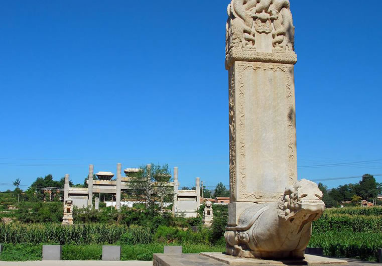 伊桑阿墓位于皇后臺村,建于清康熙四十二年(1703年)。是清初大臣伊桑阿之墓,墓地面積約7500平方米。原有三合土寶頂三座,毀于70年代初。墓前有華表、石獅、牌坊、石碑,均保護(hù)較好。在石牌樓的前面有華表1對、石獅1對,還有石碑。最前面的一對華表用漢白玉雕刻而成,底部須彌座呈八角形,須彌座的上、下枋和束腰部位,雕刻著仰覆蓮花和云朵。座上置八角形石柱,通體云紋,柱頂蹲坐望天吼,昂首威嚴(yán)。