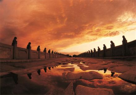 盧溝橋文化旅游區(qū),地處北京西南,西臨永定水,南望京港澳高速路,由盧溝橋、宛平城、中國人民抗日戰(zhàn)爭紀(jì)念雕塑園等景區(qū)組成,是一個集歷史、文化、藝術(shù)和革命傳統(tǒng)教育為一體的旅游觀光勝地。盧溝橋位于北京市西南15千米豐臺區(qū)永定河上,距廣安門10千米,是北京現(xiàn)存最古老的石造聯(lián)拱橋,始建于金大定29年(1189年),建成于金章宗明昌3年(1192年)。盧溝橋全長266.5米,寬9.3米,下分11個券洞。橋身兩側(cè)共有石雕護(hù)欄望柱281根。柱頭上雕有伏臥的大小石獅共501只,形態(tài)各異,栩栩如生。