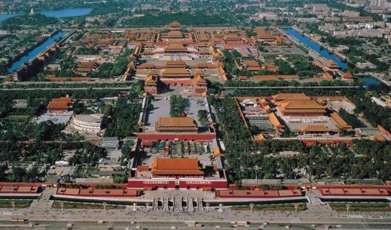 故宮宮殿是沿著一條南北向中軸線排列,三大殿、后三宮、御花園都位于這條中軸線上。并向兩旁展開(kāi),南北取直,左右對(duì)稱。這條中軸線不僅貫穿在紫禁城內(nèi),而且南達(dá)永定門(mén),北到鼓樓、鐘樓,貫穿了整個(gè)城市。