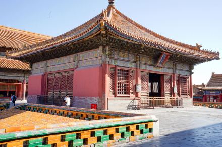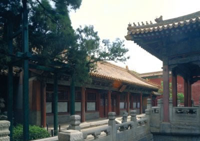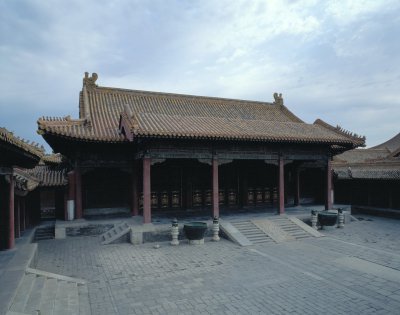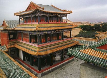 永和宮,內(nèi)廷東六宮之一,位于承乾宮之東、景陽(yáng)宮之南。明代為妃嬪所居,清代為后妃所居。清康熙帝孝恭仁皇后久居此宮。其后,道光帝靜貴妃,咸豐帝麗貴人等先后在此居住。宮為二進(jìn)院,正門(mén)南向,名永和門(mén),前院正殿即永和宮,面闊5間。明間開(kāi)門(mén),次、梢間皆為檻墻,上安支窗。正間室內(nèi)懸乾隆御題“儀昭淑慎”匾,吊白樘箅子頂棚,方磚墁地。東西有配殿各3間,明間開(kāi)門(mén),黃琉璃瓦硬山式頂,檐下飾旋子彩畫(huà)。東西配殿的北側(cè)皆為耳房,各3間。