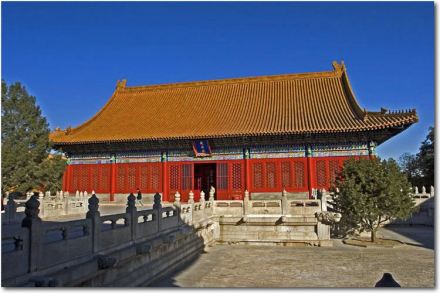 奉先殿,位于故宮內(nèi)廷東側(cè),為明清皇室祭祀祖先的家廟,始建于明初。清沿明制,于清順治十四年(1657年)重建,后又多次修繕。奉先殿建筑面積1225.00㎡。黃色琉璃瓦重檐廡殿頂,檐下彩繪金線大點(diǎn)金旋子彩畫(huà)。按清制,凡遇朔望、萬(wàn)壽圣節(jié)、元旦及國(guó)家大慶等,大祭于前殿;遇列圣列后圣誕、忌辰及元宵、清明、中元、霜降、歲除等日,于后殿上香行禮;凡上徽號(hào)、冊(cè)立、冊(cè)封、御經(jīng)筵、耕耤、謁陵、巡狩、回鑾及諸慶典,均祗告于后殿。