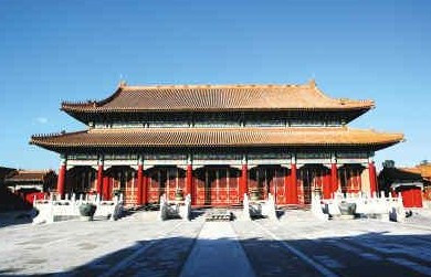 武英殿始建于明初,位于外朝熙和門(mén)以西。正殿武英殿南向,面闊5間,進(jìn)深3間,黃琉璃瓦歇山頂。東西配殿分別是凝道殿、煥章殿,左右共有廊房63間。院落東北有恒壽齋,西北為浴德堂。明初帝王齋居、召見(jiàn)大臣皆于武英殿,后移至文華殿。清兵入關(guān)之初,攝政王多爾袞先行抵京,以武英殿作為理事之所。