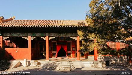 齋宮位于故宮東六宮之南,毓慶宮西,為皇帝行祭天祀地典禮前的齋戒之所。明代和清前期,祭天祀地前的齋戒均在宮外進(jìn)行。齋宮系前朝后寢兩進(jìn)的長(zhǎng)方形院落。前殿齋宮,面闊5間,黃琉璃瓦歇山頂,前出抱廈3間,明間、兩次間開(kāi)隔扇門(mén),兩梢間為檻窗。凡祭天祀地及祈谷、常雩大祀前,皇帝致齋于此。遇皇帝宿齋宮,恭設(shè)齋戒牌、銅人于齋宮丹陛左側(cè)。齋戒日,皇帝與陪祀大臣佩戴齋戒牌,各宮懸齋戒木牌于簾額。齋戒期間,不作樂(lè),不飲酒,忌辛辣。