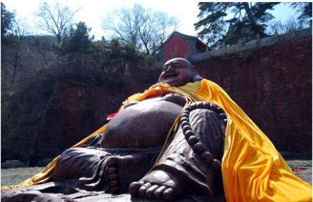 彌勒佛:千佛閣上坐神佛,納得天下福滿門(mén)。千年香樟木雕彌勒佛,作為戒臺(tái)寺唯一一尊露天佛,常得日月之光,納天地靈氣,立于千佛閣上修得萬(wàn)佛之心,用萬(wàn)世不變的歡喜笑顏,用大肚笑納天下事,也容載著天下人的希望。彌勒佛即未來(lái)佛,俗稱大肚彌勒,他強(qiáng)調(diào)要大度能容,不要計(jì)較人世間的是非憎愛(ài)。大肚彌勒寓神奇于平淡,示美好于丑拙,顯莊嚴(yán)于詼諧,現(xiàn)慈悲于揶揄,代表了中華民族寬容、和善、智慧、幽默、快樂(lè)的精神。香樟木質(zhì)地堅(jiān)硬,且具香氣,是明清時(shí)期宮廷木器三大主要用材之一。香樟木年份越久越珍貴,千年香樟木自然就成了可遇不可求的無(wú)價(jià)之寶。戒臺(tái)寺此件木雕大佛系為一整塊千年香樟木根雕,雕工精美,形態(tài)可鞠,盤(pán)腿而坐,袒胸露腹,自然形態(tài)惟妙惟肖。