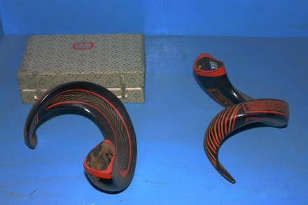 二樓展出主題包括:水煙具與嗅煙具、旱煙具與鴉片煙具、酒具、茶具、文房四寶、發(fā)飾簪釵、民間泥哨、粉撲耳套、筷子籠、弓弩箭具、民族刀具、傳統(tǒng)鎖具專題展。