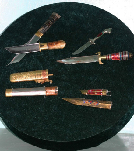 中華民族園收藏的三大民族刀具及在其影響下形成的“玉樹藏刀”、“蒙古刀”,造型各異,工藝精湛。其中清代、民國珍品頗多。征集于云南、西藏、內(nèi)蒙古、新疆、甘肅、北京等地?缭綍r間有三百年之多。