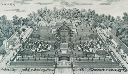 圓明園的位置在掛甲屯的北面,距暢春園約一里多路,即今北京大學(xué)的北邊,清華大學(xué)以西?滴鯐r(shí)的圓明園,里面有前湖、后湖等,其內(nèi)建有“牡丹臺(tái)”“天然圖畫”等園景。當(dāng)時(shí)圓明園還是一座藩賜園,規(guī)模不能超過皇帝的暢春園,所以建景不多,名聲也不大?珊髞(lái)隨著乾隆皇帝的登基,清王朝的盛世的到來(lái),在其多年陸續(xù)擴(kuò)建中,終于成為中國(guó)最宏偉的皇家園林。