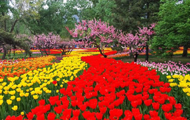 桃花園:建于1983年,占地面積4.2公頃,截止到2014年末,已收集展示觀賞桃花60余個品種5000余株,是世界上收集觀賞桃花品種最多的專類園。桃花園的觀賞桃花,從樹型上分有直枝桃類、帚桃類、壽星桃和垂枝桃類。從花型上看有單瓣型、梅花型、月季型、牡丹型和菊花型。主要品種有白花山碧桃、碧桃、絳桃、緋桃、紫葉桃、二色桃、人面桃、垂枝桃、壽星桃、灑金桃、菊花桃等品種。桃花花期自四月初一直開到五月初。