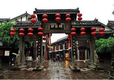 磁器口古鎮(zhèn),原名龍隱鎮(zhèn),位于重慶市沙坪壩區(qū)磁南街1號(hào),沙坪壩區(qū)東北部嘉陵江畔。北距沙坪壩中心5千米,重慶市中心14千米,南距石井坡3千米。磁器口古鎮(zhèn)總面積32.5萬(wàn)平方米,其中保存完好的古鎮(zhèn)核心區(qū)14.3萬(wàn)平方米,分布于馬鞍山東側(cè)和東南側(cè)。古鎮(zhèn)依山而建,由山起城。以磁器口正街和橫街為骨架,42條巷道垂直于正街和橫街向馬鞍山脊和溪溝邊緣呈枝狀發(fā)展,形成特征明顯的樹(shù)枝狀平面格局。正街和橫街寬3—6.5米,將嘉陵江水運(yùn)碼頭、寶輪寺及外圍交通干道聯(lián)為一體。巷道寬1.5—4.5米,順應(yīng)地形靈活布局,不拘一格,街道—巷道—宅院構(gòu)成公共空間、半公共空間、私有空間的3級(jí)空間結(jié)構(gòu),形成清晰的街區(qū)社會(huì)組織的基本模式。