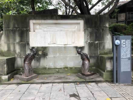 為紀(jì)念抗戰(zhàn)陣亡的將士而塑的大賣(mài)國(guó)賊汪精衛(wèi)、陳璧君夫婦的跪像。民國(guó)二十九年(1940年),跪像由馮玉祥主持、王臨乙設(shè)計(jì)創(chuàng)作,因經(jīng)費(fèi)原因,原跪像為青石雕刻,20世紀(jì)50年代修公路被深埋地下,F(xiàn)跪像為生鐵鑄造,系2002年重新制作。