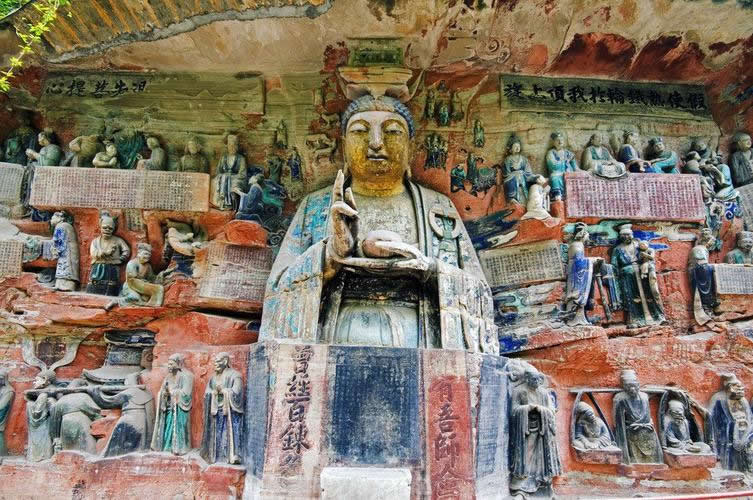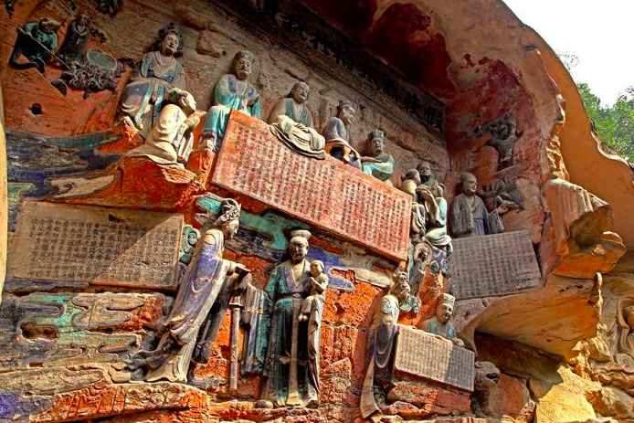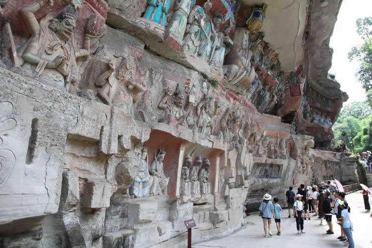 重慶市的大足石刻以其規(guī)模宏大、雕刻精美、題材多樣、內(nèi)涵豐富和保存完整而著稱(chēng)于世。它集中國(guó)佛教、道教、儒家“三教”造像藝術(shù)的精華,以鮮明的民族化和生活化特色,成為中國(guó)石窟藝術(shù)中一顆璀璨的明珠。它以大量的實(shí)物形象和文字史料,從不同側(cè)面展示了九世紀(jì)末至十三世紀(jì)中葉中國(guó)石刻藝術(shù)的風(fēng)格和民間宗教信仰的發(fā)展變化,對(duì)中國(guó)石刻藝術(shù)的創(chuàng)新與發(fā)展做出了重要貢獻(xiàn),具有前代石窟不可替代的歷史、藝術(shù)和科學(xué)價(jià)值。許多歐洲人、尤其是法國(guó)人,對(duì)大足石刻寵愛(ài)倍加。