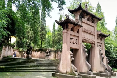 忠義祠位于護(hù)國(guó)寺右側(cè),與寺內(nèi)藥師殿僅一墻之隔,有門洞與護(hù)國(guó)寺相通,也可從護(hù)國(guó)寺右側(cè)小道進(jìn)入。始建于明弘治七年(1494年),原名“王張祠”,祀王堅(jiān)、張玨二將忠烈。明弘治十二年(1499年),合州知州宋琢見“王張祠”簡(jiǎn)陋而集資整修。明正德十二年(1517年),合州知州佘崇鳳刻石立碑并培修祠宇。清初,“王張祠”遭兵亂,片瓦無存。清乾隆二十四年(1759年),合州知州王采珍重修,立余玠、王堅(jiān)、張玨、冉琎、冉璞5位牌位祀祭,改祠名為“忠義祠”。后歷經(jīng)培修。忠義寺整座建筑由正廳、耳房和左右?guī)拷M成,采用均衡對(duì)稱式,在縱軸線主要建筑物相對(duì)對(duì)峙,構(gòu)成大門進(jìn)出的三合院。整座庭院東西寬20米,南北縱深30米。進(jìn)入石坊形大門是一個(gè)院壩兩面的廂房,拾級(jí)而上至正廳。迎面高懸“忠義千秋”金字巨匾,匾下祭臺(tái)上排列余玠、王堅(jiān)、張玨、冉琎、冉璞牌位。祭臺(tái)正面有祝文:“維神才兼武,志秉忠貞。畫地成城,據(jù)形勝而保蜀土;協(xié)力戰(zhàn)守,遺魚餅以退元戎。忠誠(chéng)貫日星,先后相繼;大節(jié)凌霄漢,古今照臨。茲屆仲春修祀典,肅陳籩豆,伏維來歆。尚饗!睆d堂楹柱有華國(guó)英撰寫的對(duì)聯(lián),上聯(lián)“持竿以釣中原,二三人盡瘁鞠躬,直拼得蒙哥一命”;下聯(lián)“把盞而澆故壘,十萬眾披肝瀝膽,竟不圖王立二心”。忠義祠內(nèi)有宋孝宗時(shí)期碑文4塊,宋光宗時(shí)期2塊,宋寧宗時(shí)期5塊,乾道年間以后22塊,其中記錄釣魚城之戰(zhàn)史跡的12塊。