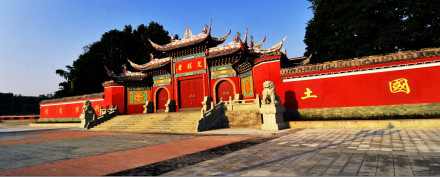 雙桂堂又名“福國寺”、“萬竹山”,由破山海明禪師于清順治十年(公元1653年)創(chuàng)建,因有兩株桂花樹而得名,座落在三峽腹地—重慶市梁平金帶鎮(zhèn)境內(nèi),是全國重點寺廟、市級重點文物保護(hù)單位,享有“西南佛教禪宗祖庭”之美譽(yù)。 [30]占地160余畝,有關(guān)圣殿、彌勒殿、大雄殿、文殊殿、破山塔、大悲殿、藏經(jīng)樓,位置從前到后,地勢由低到高,平行排列在中線上,均勻而對稱;客堂僧寮分布兩旁,天井海壩點綴其間,主次分明,虛實相生,自成體系;回廊曲巷,長亭短榭,廊巷緊連,巧妙地連接成一個結(jié)構(gòu)恢宏的宮殿式建筑群。
