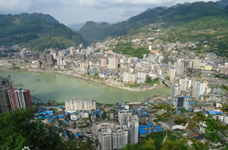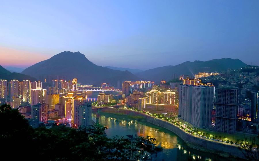 彭水縣,位于重慶市東南部,地處武陵山區(qū),居長江一級(jí)支流烏江下游。北連石柱土家族自治縣,東北接湖北省恩施土家族苗族自治州利川市,東連黔江區(qū),東南接酉陽土家族苗族自治縣,南鄰貴州省沿河土家族自治縣、務(wù)川仡佬族苗族自治縣,西南連貴州省道真仡佬族苗族自治縣,西連武隆區(qū),西北與豐都縣接壤。東西寬78千米,南北長96.40千米,水陸邊界線總長414.90千米,總面積3903.79平方千米。