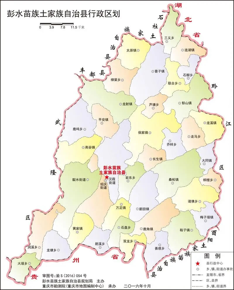 彭水苗族土家族自治縣轄3個(gè)街道、18個(gè)鎮(zhèn)、18個(gè)鄉(xiāng):