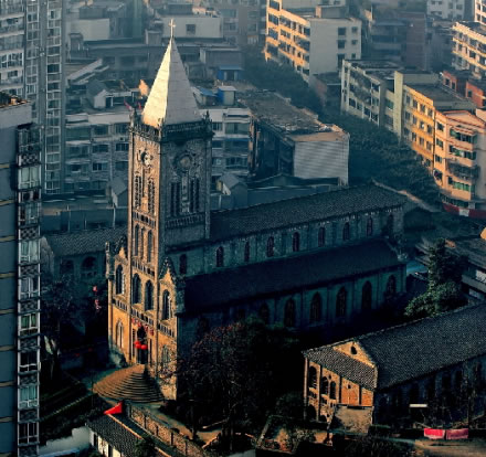 重慶市榮昌區(qū)天主教堂建成于1915年,是利用“余棟臣教案”的賠款修建。教堂位于榮昌縣城后西街,主體為哥特式建筑風(fēng)格,由圣堂主體樓、神父樓和教會學(xué)校三部分組成,后多遭破壞、占用,現(xiàn)存約四分之一。重慶榮昌縣天主教堂解放后被征用,1980年恢復(fù)宗教活動。現(xiàn)為省級文物保護(hù)單位,電影《1942》曾在此取景。該教堂于1915年由法國人設(shè)計(jì)并修建,主體建筑為歌特式建筑,是西南地區(qū)最大且保存最完整的教堂。
