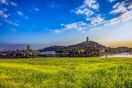 景區(qū)既是宋初著名道教學(xué)者和道教詩(shī)人陳摶的故鄉(xiāng),又是“中國(guó)最美油菜花!薄S筒嘶ê诵膮^(qū)種植面積達(dá)3萬(wàn)余畝,其中以油菜為主要背景、小麥為配景種植的中國(guó)最大油菜花太極圖案,直徑達(dá)236米;ê7褐郏猴L(fēng)佛面,清澈的瓊江穿境而過(guò),形成了“十里菜花、黃金鋪地”的壯美景觀。2008開(kāi)始,已經(jīng)連續(xù)舉辦了十二屆菜花節(jié),2009年,潼南油菜花景區(qū)被評(píng)為“中國(guó)最美的油菜花海”之一,2010年被評(píng)為“重慶十大春季旅游目的地”之一。