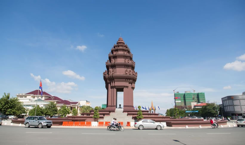 獨(dú)立紀(jì)念碑 柬埔寨獨(dú)立紀(jì)念碑位于諾羅敦大道和西哈努克大道交叉處,為紀(jì)念1953年11月9日柬擺脫法國(guó)殖民統(tǒng)治,獲得完全獨(dú)立而建。1958年3月落成,高37米,共7層,上有蛇神(柬文化象征)100條。每年獨(dú)立節(jié)時(shí),柬國(guó)王或國(guó)王代表都要在此舉行隆重的慶典。來(lái)訪的外國(guó)元首也多到這里獻(xiàn)花圈。