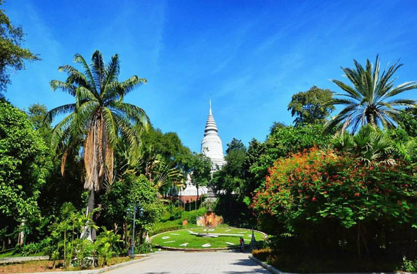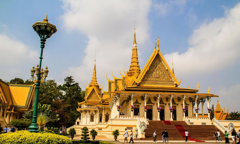 金邊王宮 金邊王宮(RoyalPalace)也稱四臂灣大王宮,因位于上湄公河、洞里薩河、下湄公河與巴薩河的交匯處而得名,是諾羅敦國(guó)王于1866—1870年建造的。王宮為長(zhǎng)方形,長(zhǎng)435米,寬402米,外有城墻。王宮的建筑具有高棉傳統(tǒng)建筑風(fēng)格和宗教色彩,宮殿均有尖塔,代表繁榮;殿身涂以黃、白兩色,黃色代表佛教,白色代表婆羅門教。王宮最初為木結(jié)構(gòu),后改建為水泥結(jié)構(gòu),但保持了原來(lái)的風(fēng)貌。王宮內(nèi)主要建筑有:銀閣、金鑾殿、波佳尼閣、凱瑪靈宮、月光樓。