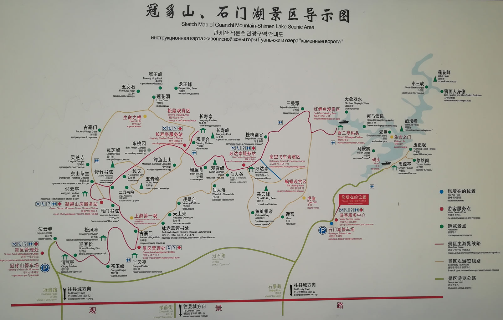 共有蜘蛛巖、水上金字塔、鄂魚(yú)峰、金鼠巖、九龍獻(xiàn)瑞、佛洞、八仙巖等景點(diǎn)20多處,是冠豸山風(fēng)景區(qū)又一顆璀璨明珠。 九龍湖內(nèi)港汊眾多,彎彎曲曲,處處是“水上迷宮”,曲徑通幽,是一個(gè)珊瑚狀的湖泊,而主要有四大龍溏坑、飛龍坑、九龍灣坑和碧螺坑。主要景點(diǎn)有: 九龍獻(xiàn)瑞:位于大壩口,九條如巨龍走勢(shì)的山脈齊聚于次,而其中一條飛龍最為生動(dòng)形象,蜿蜒曲伸,猶如從天而降猛龍,正潛翔入海,栩栩如生。 金猴戲犬:大壩側(cè)一組丹霞石柱、石壁楊成一幅美妙、畫(huà)圖。正中石柱活象一位魁梧壯漢,為九龍湖守護(hù)神。在它的腳下是“金猴戲犬”圖,金猴激戰(zhàn)天兵天將,面對(duì)一群兇神惡煞的圍攻,騰身一躍,站于“哮天犬”尾巴上搔首弄姿,戲弄敵人。 如意壁:在一塊山崖下方,壁立平整,棱角分明。象一扇洞府山門(mén)。(也有人稱(chēng)它為“無(wú)字碑”) 靈蚌含珠:一小山丘形似靈蚌,碩大豐滿(mǎn),勃勃生機(jī),猶如正在孕育著無(wú)數(shù)個(gè)珠的蚌母。 飛龍顯身:九條獻(xiàn)瑞中,其一起在半腰中突然裸露出100余米長(zhǎng)龍身。猶如正在它的敵人酣斗中突然顯出原形,威風(fēng)凜凜震懾對(duì)方。這是一道“丹霞山脊”也稱(chēng)“石梁”,如攀登這段石梁比黃山“鯽魚(yú)背”更險(xiǎn)更奇。