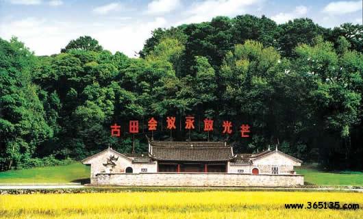 古田會議會址,位于古田鎮(zhèn)溪背村,原系廖氏宗祠,建于公元1848年(清道光二十八年),為四合院式建筑,有庭院、前后兩廳和左右兩廂房,建筑面積為826㎡。1917年,建立古田第一所小學——“和聲小學”,1929年5月紅四軍進駐古田后把“和聲小學改名為曙光小學,同年12月28日至29日,由毛澤東同志親自主持的紅四軍第九次代表大會(即古田會議)在這里勝利召開,通過了具有歷史意義的古田會議決議案,確立了思想建黨、政治建軍的指導思想和黨指揮槍的原則,是建黨建軍史上的里程碑,因此該會址先后被評為福建省“十佳風景區(qū)之一”、全國第一批重點保護單位、全國十大優(yōu)秀愛國主義教育基地、全國紅色旅游經(jīng)典景區(qū)以及國家AAAA級旅游區(qū)。