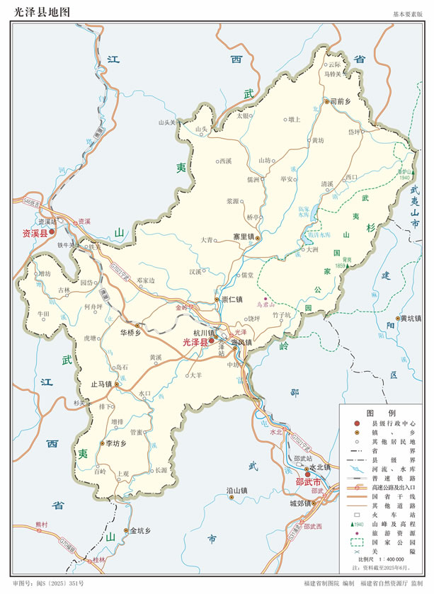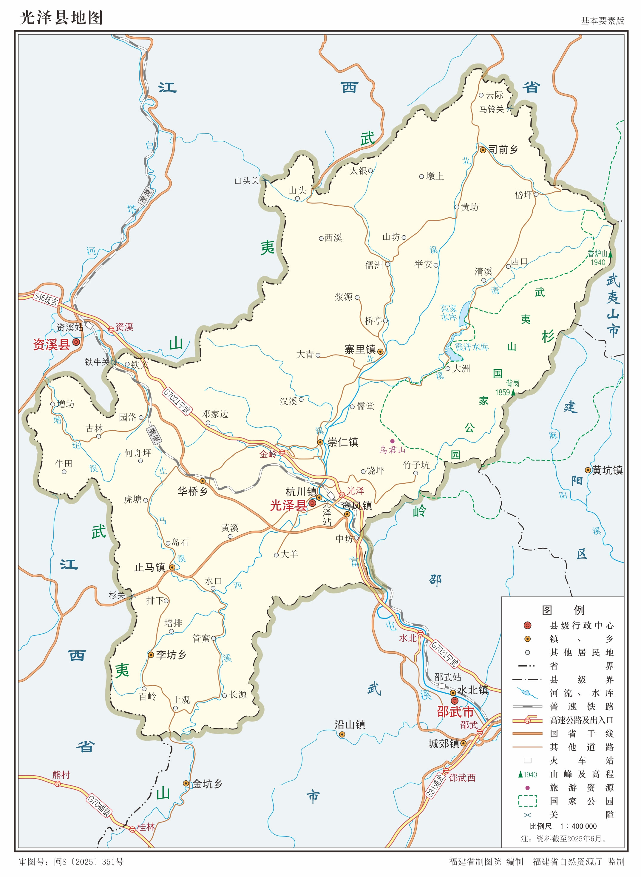 光澤縣位于福建省西北部,武夷山西南麓,與閩贛兩省的武夷山、邵武、建陽、黎川、資溪、貴溪、鉛山七縣市交界,是鷹廈鐵路入閩門戶,316國道橫貫縣境,縣城距武夷山機(jī)場僅百公里。人口16.02萬,總面積2232.4平方千米。全縣下轄3個鎮(zhèn)、5個鄉(xiāng),90個村(居)委會。