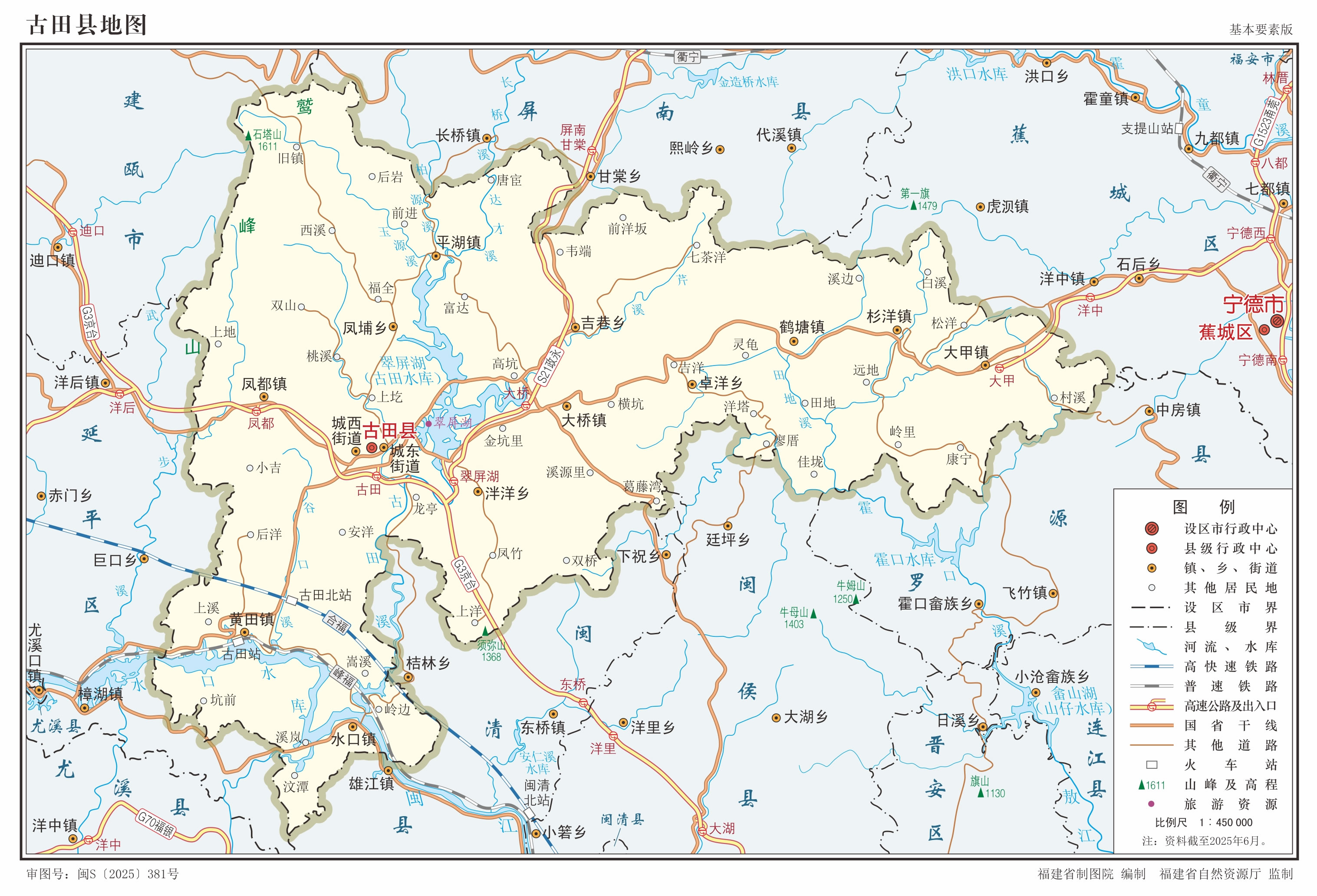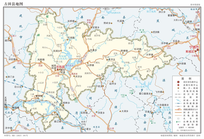古田縣轄2個(gè)街道、7個(gè)鎮(zhèn)、5個(gè)鄉(xiāng):