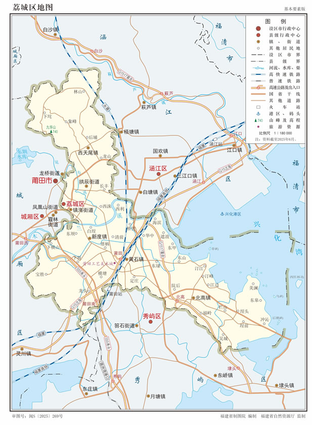 荔城區(qū)轄2個(gè)街道、4個(gè)鎮(zhèn):