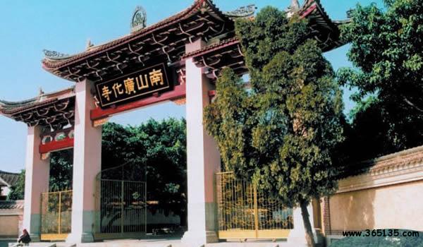 南山廣化寺:座落在城南鳳凰山。現(xiàn)行建筑群是清光緒初年依舊制重修的,從20世紀(jì)80年代開始,進(jìn)行了大規(guī)模的擴(kuò)建。山門照壁上有中國(guó)佛教會(huì)已故會(huì)長(zhǎng)趙樸初題寫的“莊嚴(yán)國(guó)土,利樂有情”。廣化寺占地3.2萬多平方米,建筑物面積1.7萬平方米。踏入山門,沿著中軸線建筑拾級(jí)而上,全長(zhǎng)385米。依次是照壁、牌坊、山門、放生池、彌勒殿(天王殿)、大雄寶殿、法堂(上為藏經(jīng)閣)、臥佛殿(下為祖堂);兩側(cè)翼建有寬敞的石柱廊廡,東側(cè)次第為東羅漢殿、鐘樓、五觀堂、伽藍(lán)殿、尊客堂、水云鄉(xiāng)、圓通門、溪聲閣;西側(cè)次第為西羅漢殿、鼓樓、學(xué)戒堂、祖師殿、凈行堂(念佛堂)、煙霞窟、方丈室、看山樓。寺后東西兩角的最高處,分別聳立著觀音閣和小南山。南山上有幾十株不知年代的蒼松翠柏。