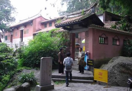 這里巨石峭立,古木參天,近旁的天侶呈瑞,是兩株不同的樹種緊緊地抱在一起,一棵為重陽木、一棵是榕樹,樹根相盤,樹身相抱,樹丫纏繞,如膠如漆,歷經(jīng)歷300多年,宛如一對(duì)忠貞不渝的戀人。