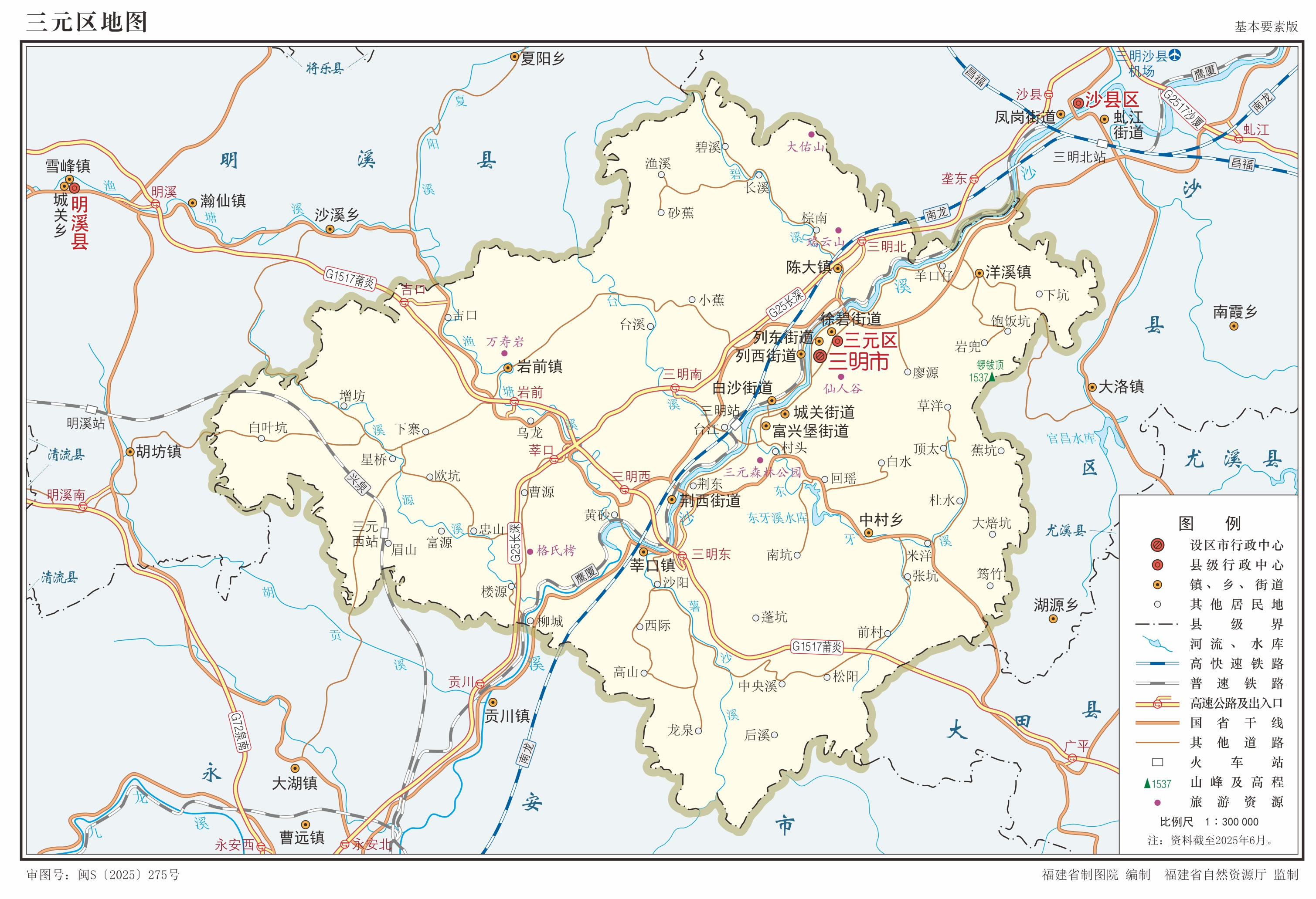 三元區(qū)轄4個街道、2個鎮(zhèn)、2個鄉(xiāng):