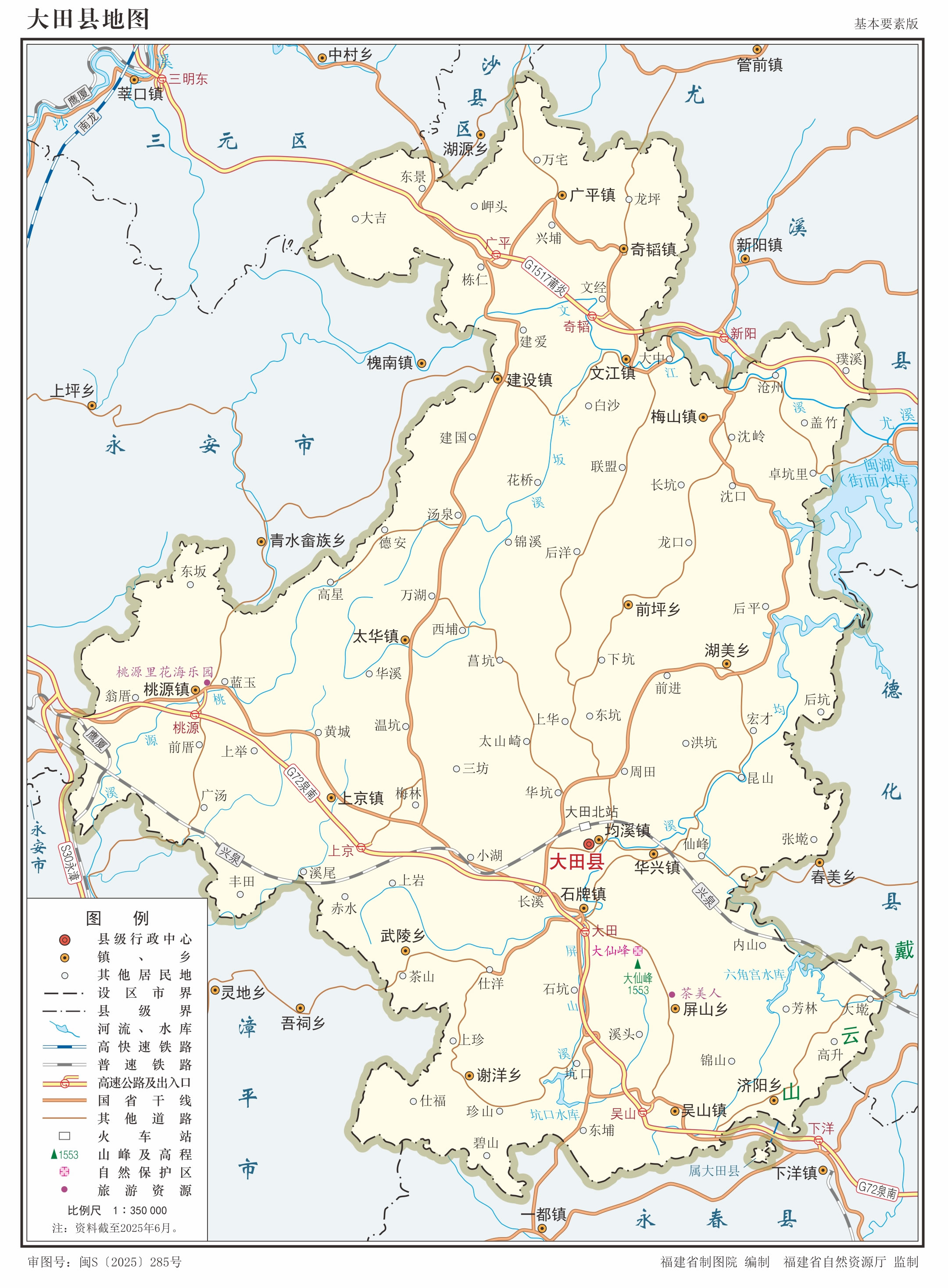 大田縣轄8個(gè)鎮(zhèn)、10個(gè)鄉(xiāng):