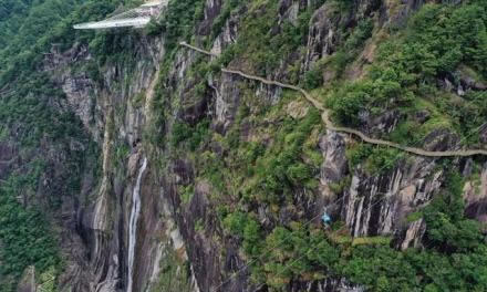 心形懸崖棧道位于岱仙瀑布兩側(cè),從遠處看,兩邊的棧道整體呈一個心形,蜿蜒盤桓在崖壁上,心形棧道全程3000米,高差314米,是國內(nèi)難得一見的心形立體環(huán)瀑棧道。