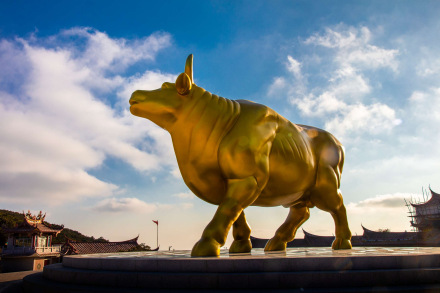 重修的祖殿東側(cè)小山坡上有頭福光萬丈的金牛,游客沿花紋元素登高臺階可得“福祿壽喜”祝福,金牛底座設置成轉(zhuǎn)盤,游客可根據(jù)自己的吉時轉(zhuǎn)動牛的方向,再圍繞金牛轉(zhuǎn)行,可完成“牛轉(zhuǎn)乾坤,人轉(zhuǎn)錢來”的祈福體驗。