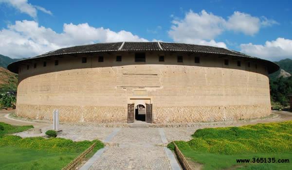 大地土樓群:位于福建省華安縣仙都鎮(zhèn)大地村,距漳州80公里、距廈門147公里,由“國保”二宜樓、南陽樓和“縣保”東陽樓組成,均為蔣姓祖孫在“康乾盛世”所建的大型住宅,是古代中國夯土建筑一大奇跡。樓群受蜈蚣山、大金面山、虎形山、大龜山、獅子山環(huán)抱,其擇址呈現(xiàn)出驚人的幾何學(xué)圖形之美。樓群的建筑平面布局獨(dú)具特色,防衛(wèi)系統(tǒng)構(gòu)思獨(dú)創(chuàng),構(gòu)造處理與眾不同,建筑裝飾精巧華麗,而且山水環(huán)境宜人、人文景觀豐富,總體布局貫穿以人為本,天人合一的思想。以“圓土樓之王”、“民居瑰寶”華安二宜樓為主體的大地土樓群保留著三千年前商代夯土造屋的建筑技術(shù),它們不僅是“世界上獨(dú)一無二的,神話般的建筑模式”也是傳統(tǒng)文化可見、可觸、可感的呈現(xiàn)。