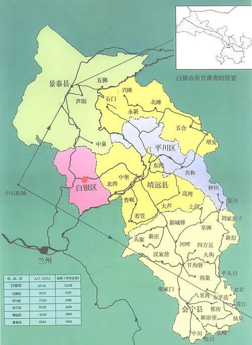 白銀市轄2個(gè)區(qū)、3個(gè)縣: