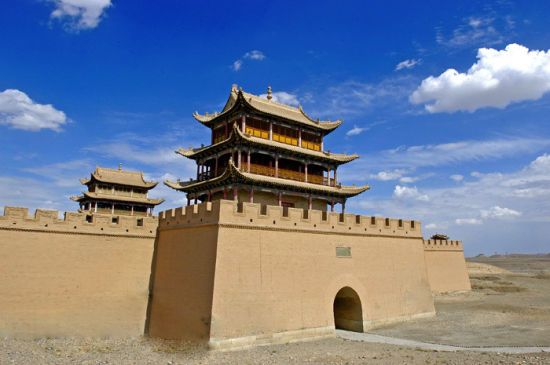 嘉峪關(guān),號稱“天下第一雄關(guān)”,位于甘肅省嘉峪關(guān)市西5千米處最狹窄的山谷中部,城關(guān)兩側(cè)的城墻橫穿沙漠戈壁,北連黑山懸壁長城,南接天下第一墩,是明長城最西端的關(guān)口,歷史上曾被稱為河西咽喉,因地勢險(xiǎn)要,建筑雄偉,有連陲鎖鑰之稱。嘉峪關(guān)是古代“絲綢之路”的交通要塞,中國長城三大奇觀之一(東有山海關(guān)、中有鎮(zhèn)北臺、西有嘉峪關(guān))。