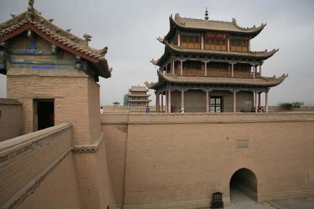 內(nèi)城四角有角樓,也叫“戍樓”,形如碉堡,是守城士兵值勤放哨的地方。南北城墻建有敵樓,是放置兵器的地方。站在這里回望,“光化樓”、“柔遠(yuǎn)樓”及“嘉峪關(guān)樓”三座高大建筑,同在一條中軸線上。這種“過洞式城門”及高臺樓閣建筑形式,是中國幾千年建筑歷史及建筑形式的延續(xù)發(fā)展。