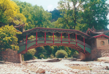 經(jīng)明末戰(zhàn)亂之后,山里的香客已經(jīng)絕跡,只留下寂靜的空山。谷內(nèi)原有一座臥橋,當(dāng)時(shí)已被洪水沖毀,只剩下兩個(gè)橋墩。劉一明觸景生情,無限感傷,立志要把此山修整一番,恢復(fù)“興隆”勝跡。于是他行醫(yī)治病,為興隆山募集資金。經(jīng)過多年的努力,在山上修建了百十座殿閣亭樓,還架起了一座宏偉的木拱橋,當(dāng)時(shí)取名“迎善橋”,意思是迎接八方的善士。從此,興隆山的香火四季不衰。后來山洪暴發(fā),橋又被沖跨,劉一明非常惋惜,束手無策。他有一個(gè)徒弟叫唐童,一天在邊采藥,見有人落水,便不顧一切地下水搭救,救上岸一看,是個(gè)又瞎又聾的老婆婆。唐童沒有嫌棄老人,而是替她換好衣裳,找來許多食物給她吃。老婆婆覺得唐童善良,就送給他一根三寸長的麥秸,說遇到河流擋路,它可以當(dāng)橋。唐童接過麥秸,正要道謝,老婆婆忽然不見了。唐童想驗(yàn)證老婆婆的話,來到河邊,把麥秸放在河上,轉(zhuǎn)眼間就成了一座精美的橋。從此,這座橋再也沒有被洪水沖跨過。