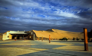 | 敦煌鳴沙山月牙泉景區(qū)位于甘肅省敦煌市城南5千米處,景區(qū)范圍界定為76.82平方千米,核心景區(qū)面積界定為12.79平方千米,規(guī)劃外圍控制地帶面積為136.04平方千米。景區(qū)內(nèi)地貌主要有大、小泉灣和周圍的鳴沙山組成。小泉灣是間于東沙山與北沙山的洼地,主要用于辦公和生活區(qū)。大泉灣是北沙山與南山之間的洼地,月牙泉和月泉閣等古建筑群分布其內(nèi),也是景區(qū)的核心。