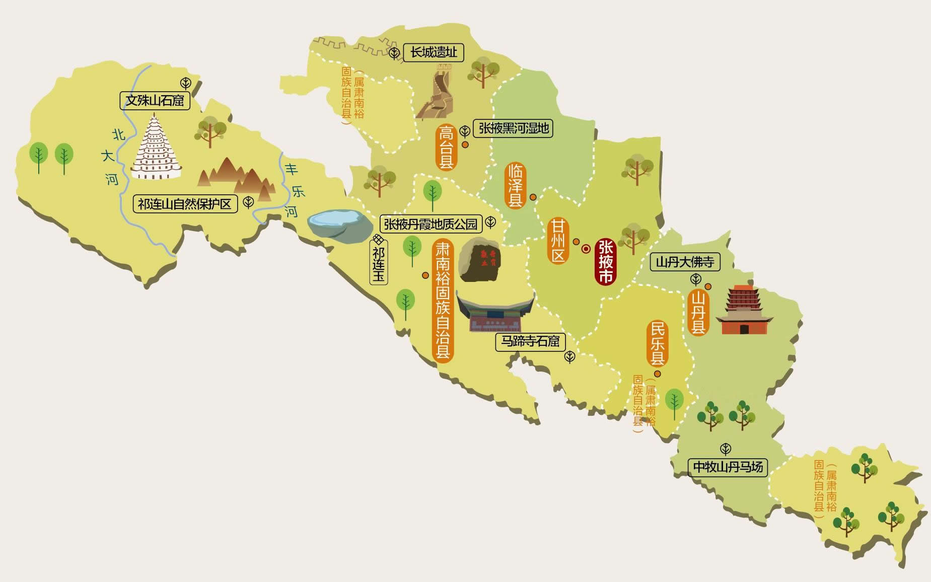 張掖市轄1個市轄區(qū)、5個縣: