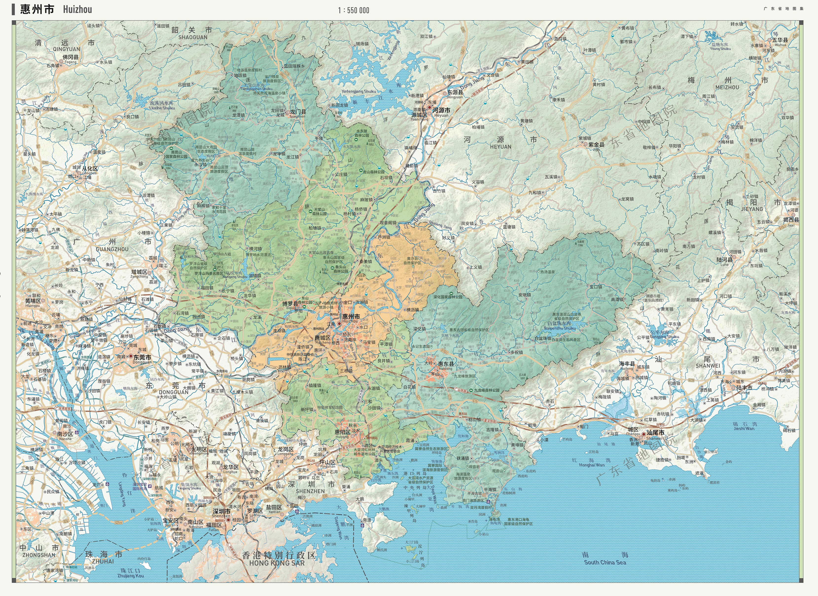 惠州市位于廣東省東南部,屬珠江三角洲東北、東江中下游地區(qū)。市域東西相距152千米,南北相距128千米。東接汕尾市,南臨南海,與深圳市相連,西南接?xùn)|莞市,西交廣州市,北與韶關(guān)市、東北與河源市為鄰。與周圍6市政區(qū)界線846.49千米。全市土地面積11347平方千米,海域面積4520平方千米,海岸線長281.4千米,是廣東省海洋大市之一。半島與海灣相間,良港較多。島嶼羅列,有大小島嶼162個。
