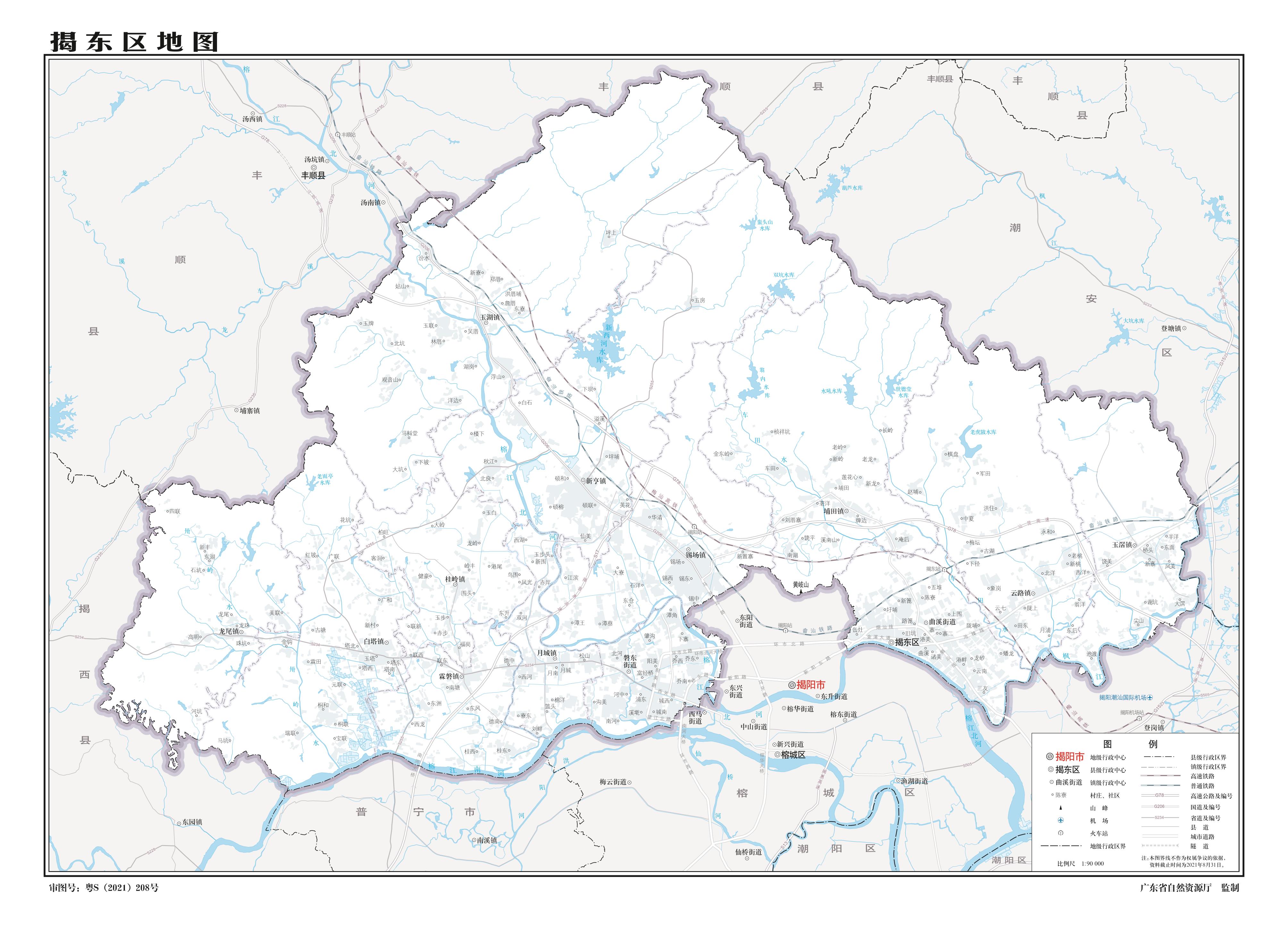 位置境域 揭東區(qū)位于廣東省東部,地處汕頭、潮州、揭陽、梅州四市的中心地帶,東接潮州市潮安區(qū),西連揭陽市榕城區(qū),北與豐順縣接壤,西與揭西縣為鄰。
