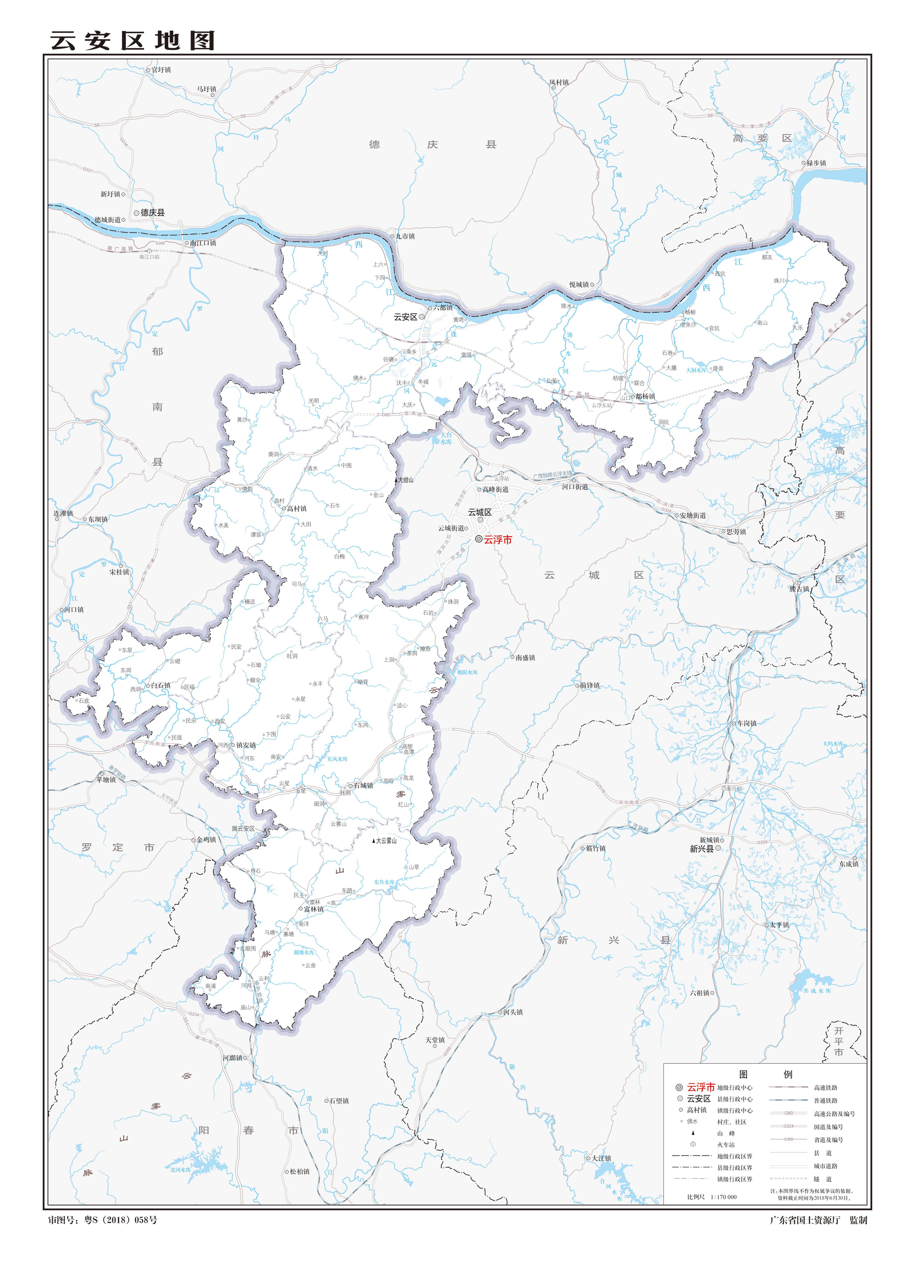 位置境域 云安地處粵西、西江中游南岸,位于云浮市中部,東與云城區(qū)相連,南與新興縣、陽(yáng)春市毗鄰,西與羅定市、郁南縣接壤,北臨西江與德慶縣隔江相望,是溝通沿海與內(nèi)地、連接珠江三角洲與大西南的交通要沖。陸路距云浮市區(qū)18公里,距廣州148公里,水路距香港177海里,距梧州60海里。全區(qū)域面積1185平方公里。